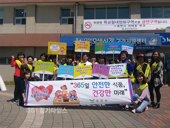 [경기타임스] 오산시는 오색시장, 롯데마트 일대에서 공무원, 소비자식품위생감시원 등 20여명이 참석해 주변 시장 상인, 시민을 대상으로 ‘식중독 ․ 부정불량식품 예방 캠페인’을 실시했다.