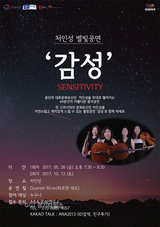 처인성에서 열리는 이날 공연에는 처인성에 관한 해설과 함께 현악4중주 앙상블 공연팀 ‘콰르텟 레브(Quartet Reve)'가 ‘전쟁, 위기, 영웅, 미래’ 주제로 연주를 한다.
