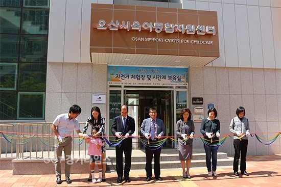 [경기타임스] 오산시육아종합지원센터는 19일 영유아 자전거 안전 체험장 및 오산 시간제보육실 새단장 기념식을 개최했다.