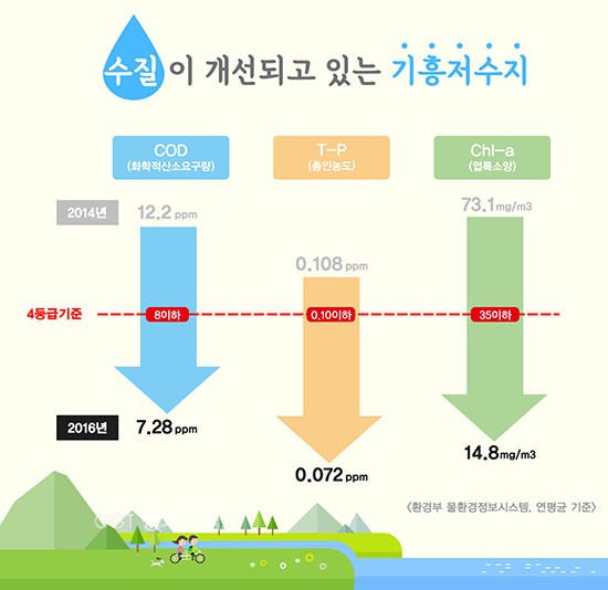 기흥저수지를 2020년까지 3등급(COD 5ppm 이하, T-P 0.05 이하) 수준으로 개선하겠다는 용인시의 목표에도 긍정적인 신호가 되고 있다.