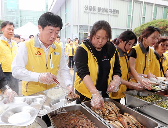 정 시장은 이날 어르신들에게 흰밥과 조기구이, 불고기, 나물 등을 직접 나눠주며 “많이 드시고 건강하게 오래 사시길 바란다”고 격려했다.