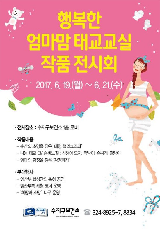 보건소 관계자는 “임신부의 정서에 도움을 주고 태아와 더욱 깊은 교감을 나눌 수 있도록 전시회를 마련했다”며 “태교의 즐거움과 중요성을 느낄 수 있는 계기가 될 것”이라고 말했다.