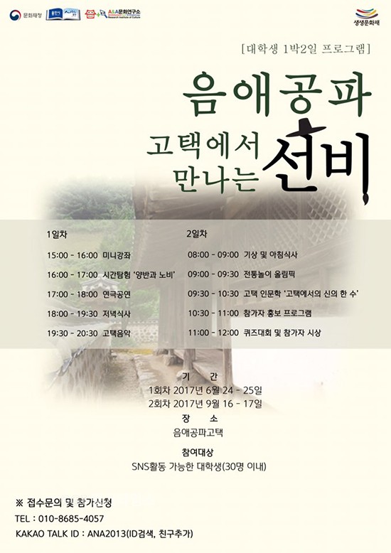 일정은 24~25일은 대학생 대상, 7월 1~2일은 일반인 대상으로 진행된다. 참가비는 무료이며 가족참가자에게는 민속촌 입장권을 나눠준다.