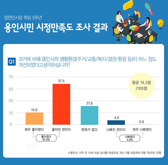 [경기타임스] 용인시민의 67.5%는 생활환경이 좋아졌다고 응답했다.