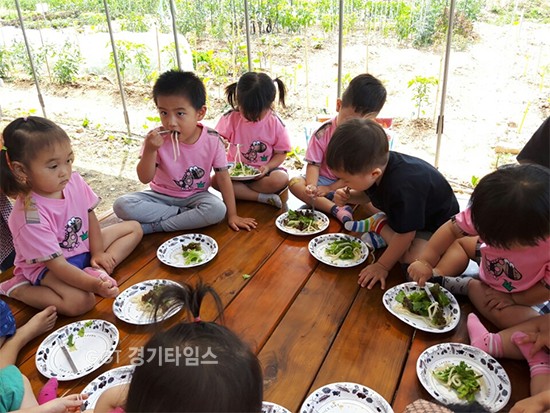 [경기타임스] 용인시는 처인구 마평동 용인시민농장 어린이농사 체험장에서 어린이집 원아 30여명이 직접 농작물을 수확해 즐거움을 나누는 ‘팜파티’를 진행했다.