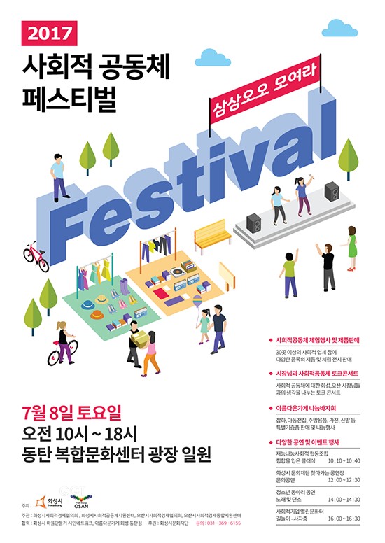 [경기타임스] 오산시와 화성시가 2017 사회적공동체 페스티벌를 7월 8일 화성 동탄 복합문화센터 광장에서 개최한다고 30일 밝혔다.