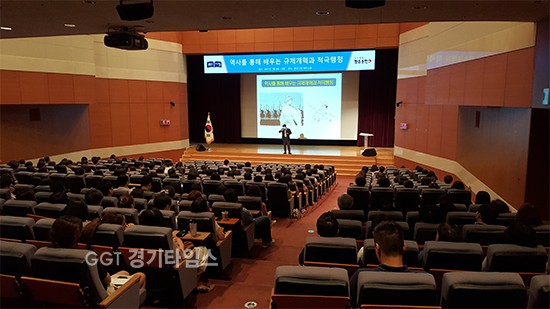 이날 교육에는 한국전략리더십연구원 노병천 원장이 ‘역사를 통해 배우는 규제개혁과 적극행정’이란 주제로 이순신 리더십 등 역사적 인물들의 혁신사례를 소개하고 공직자들이 진취적 사고와 창의성을 갖고 혁신 역량을 강화할 필요성을 강조했다.