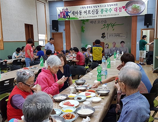 [경기타임스]오산시 세마동 지역사회보장협의체는 어르신들을 위한 시원한 콩국수 대접 행사를 진행했다.