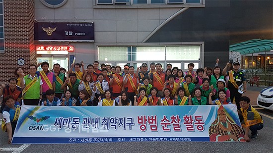 [경기타임스] 오산시 세마동의 8개단체(주민자치회, 통장단협의회, 새마을지도자협의회, 새마을부녀회, 체육회, 바르게살기위원회, 자연보호협의회, 지역사회보장협의체)는 안심하고 다닐 수 있는, 범죄없는 세마동을 만들기 위해 지난 17일 저녁 7시부터 9시까지 관내 취약지구를 방범 순찰하며 범죄예방 활동을 펼쳤다.