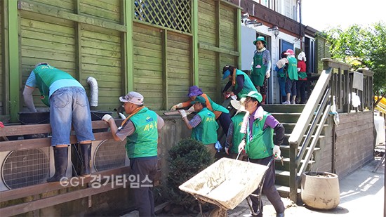 시새마을회 소속의 새마을지도자 협의회, 새마을 부녀회, 새마을문고, 새마을 교통봉사대원 등 42명은 뜨거운 태양아래 침수피해 펜션을 찾아 수해 복구 작업 등을 도우며 구슬땀을 흘렸다.