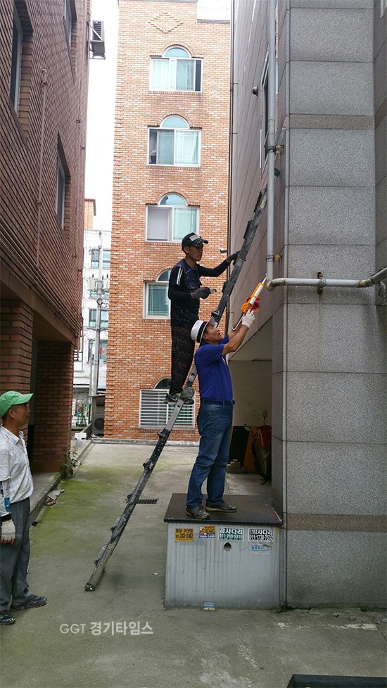 [경기타임스]오산시는 강력범죄 취약지역 일대 건물의 벽면 가스배관 등에 특수형광물질을 도포하고 형광물질 도색 알림 경고판을 설치했다.