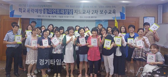 [경기타임스]오산시청소년상담복지센터는 지난 10일부터 11일까지 초‧중‧고등학교 또래상담 지도교사 30여 명을 대상으로 ‘2017년 학교폭력예방 솔리언또래상담 지도교사 2차 보수교육’을 실시했다.