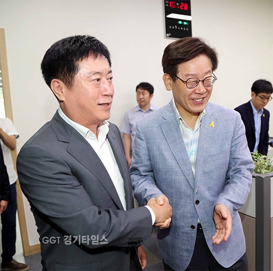 [경기타임스]용인시와 성남시 수장이 22일 특별한 만남을 가져 눈길을 끌었다.