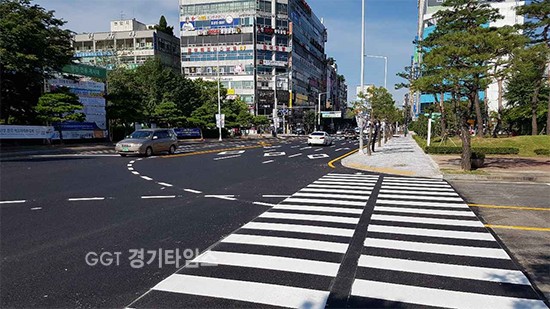 [경기타임스]오산시는 오산시청앞 우회전전용차로 설치를 완료했다.
