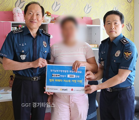 [경기타임스]용인동부경찰서(서장 김상진)는 26일 범죄피해로 인하여 어려움을 겪고 있는 사회취약계층 두 가정을 직접 문하여“희망나눔기금”500만원씩을 각각 전달했다.