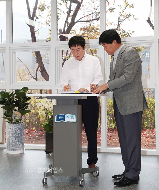 [경기타임스] 정찬민 용인시장은 6일 오전 8시30분 지하1층 시민홀에 마련된 시장실로 출근해 스탠딩 결재를 시작으로 첫 업무를 시작했다.