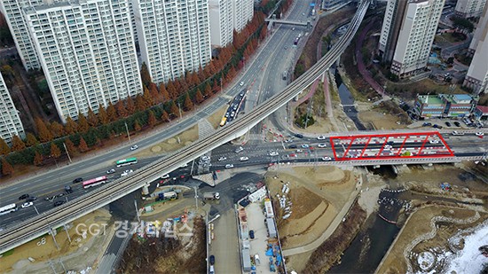 구갈교는 6차선 도로 중간에 교량만 4차선으로 상시 병목현상을 보여 지난 3월부터 구갈교 60m를 4차선에서 6차선으로 확장한다.
