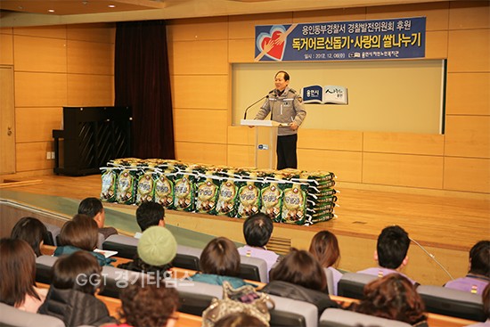 [경기타임스] 용인동부경찰서와 경찰발전위원회는 6일 용인시 처인노인복지관에 방문, 독거어르신들을 위한‘사랑의 쌀’전달식을 갖고 추운 겨울 따뜻한 나눔 활동을 펼쳤다.