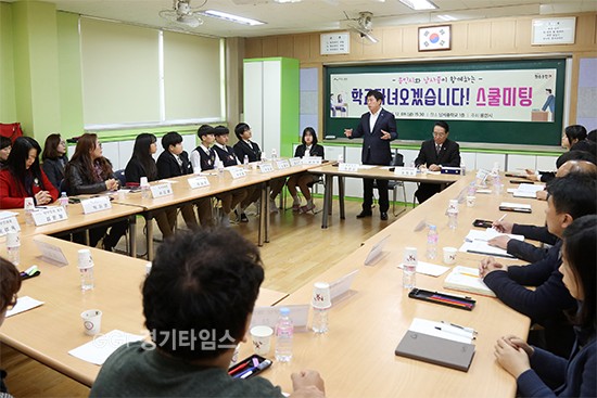 [경기타임스] 정찬민 용인시장의 올해 네 번째 ‘스쿨미팅’이 8일 오후 처인구 남사면 봉무리 남사중학교에서 열렸다.