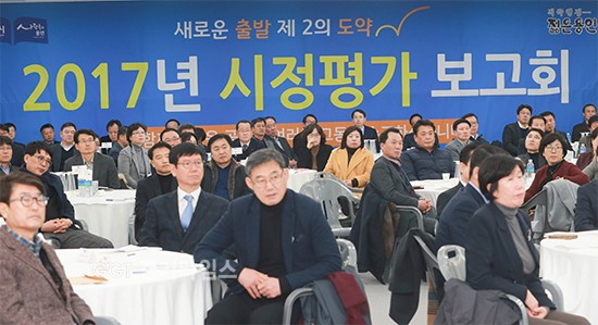 [경기타임스] 용인시는 시민체육공원 3층 만찬장에서 5급 이상 공무원과 협업기관장 등 163명이 참석한 가운데 ‘2017 시정평가보고회’를 개최했다고 밝혔다.