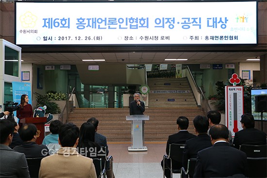 홍재언론인협회(회장 김삼석, 수원시민신문)는 26일 오전 수원시청 1층 로비에서 제6회 홍재 의정·공직대상 시상식을 개최했다.
