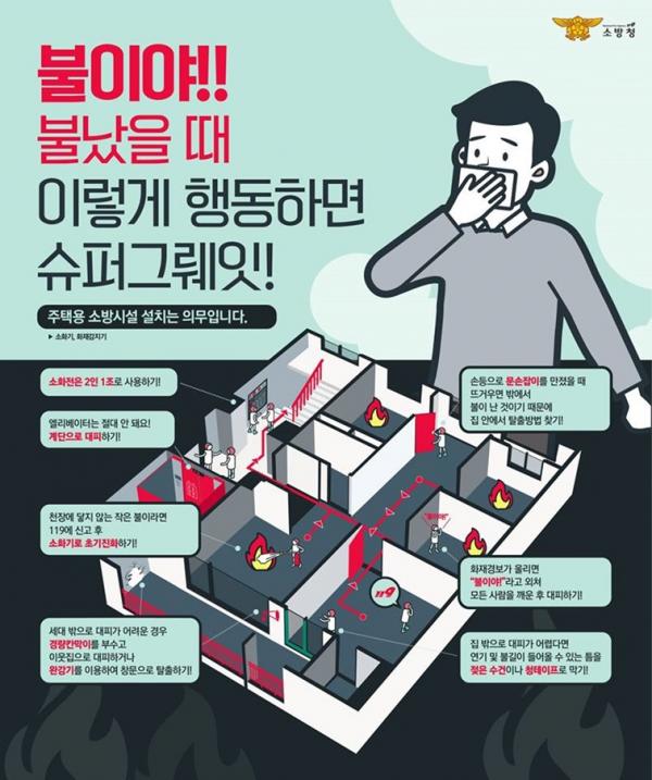 작년 2월에 주택용 소방시설 설치가 의무화되었지만 여전히 설치는 미비한 수준이다. 인명 피해를 최소화하기 위해 반드시 주택용 소방시설(소화기, 단독경보형감지기)을 집 안에 설치해야 한다. 아직 미설치된 가정이 있다면 주택용 소방시설을 설치하여 내 가족, 이웃의 소중한 생명과 안전을 지키는 서로의 약속이다.