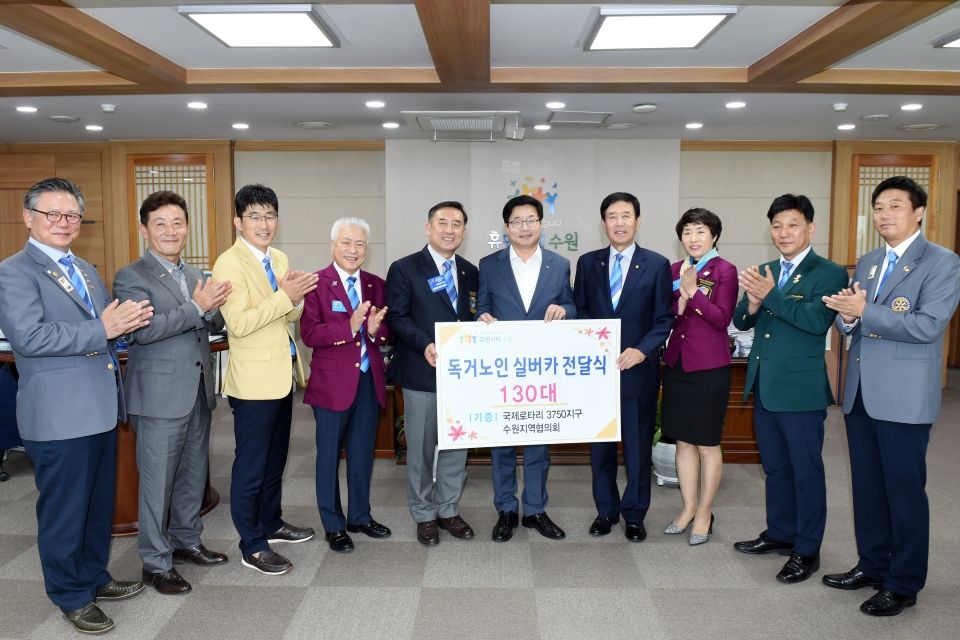 국제로타리클럽 3750지구 수원지역협의회는 27일 수원시청 집무실에서 수원시에 실버카 130대(약 2600만 원 상당)를 전달했다.