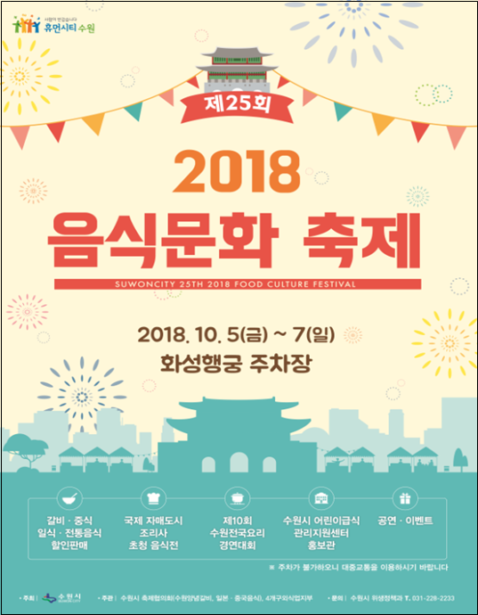 수원시가 제55회 수원화성문화제 기간인 5~7일 3일간 수원 화성행궁 주차장에서 ‘제25회 음식문화축제’를 연다.