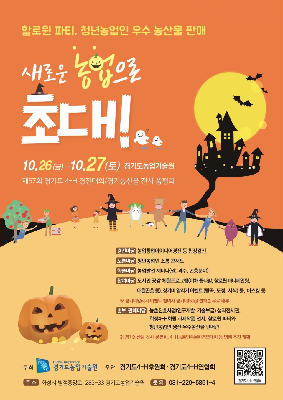 도민들을 위한 ‘할로윈 축제’를 콘셉트로 진행되는 이번 행사에서는 ▲4-H회원의 1년간 활동성과 경진과 사례발표회 ▲청년농업인생산 농산물 경진, ▲농촌진흥사업 성과전시, ▲농촌민속문화 경연대회 ▲우수농산물 품평전시 등 다양한 프로그램이 진행된다.