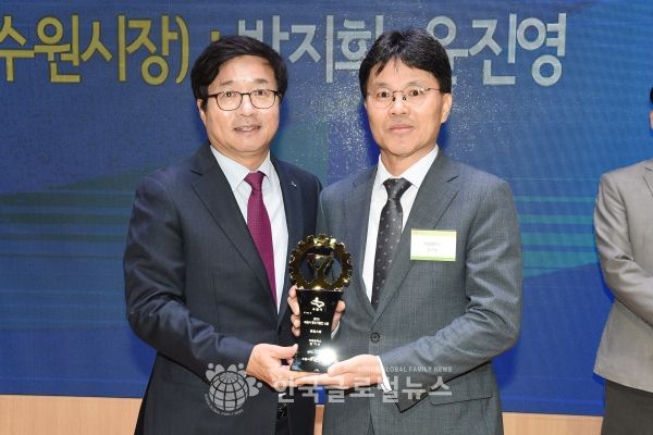 친환경 콘크리트 블록을 개발해 환경부로부터 환경지표인증을 받은 ㈜코우 권혁우 대표가 창업 및 벤처부문상, 경기도 여성고용우수기업으로 청년내일채움 공제, 산학일체형 도제학교 운영 등으로 수원시 일자리 창출에 이바지하고 있는 ㈜에이케이테크 김용대 대표가 일자리창출부문상을 받았다.