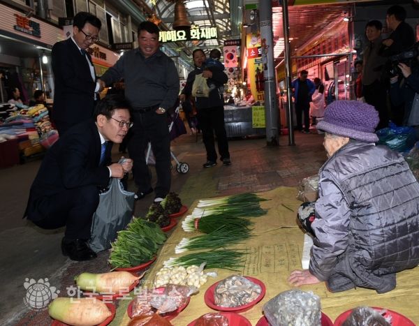 이재명 지사는 이날 상인들에게 “한국경제는 성장하고 있지만 경제는 어렵다고 한다. 경제는 총량이 중요한 것이 아니라 흐름이 중요하기 때문”이라며 “국가가 해야 할 일은 돈이 특정한 곳에만 쌓이지 않고 골고루 순환하게 하는 것이다. 이래야 경제가 살아난다”고 말했다.