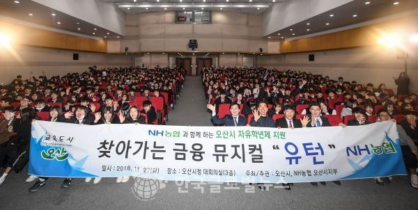 오산시(시장 곽상욱)와 NH농협 오산시지부(지부장 류인석)는 지난 27일 오산시청 대회의실에서 관내 중학생 450여명을 대상으로 「찾아가는 금융 뮤지컬 “유턴”」 공연을 성공적으로 마무리했다고 밝혔다.