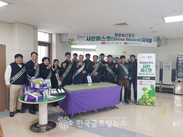 화성시는 지역의 우수 농산물인 화성송산포도의 경쟁력을 높이고 젊은 포도농가를 육성하고자 일반 캠벨포도에 비해 약 6배나 비싸게 판매되는 ‘샤인머스켓’생산 확대에 나섰다.