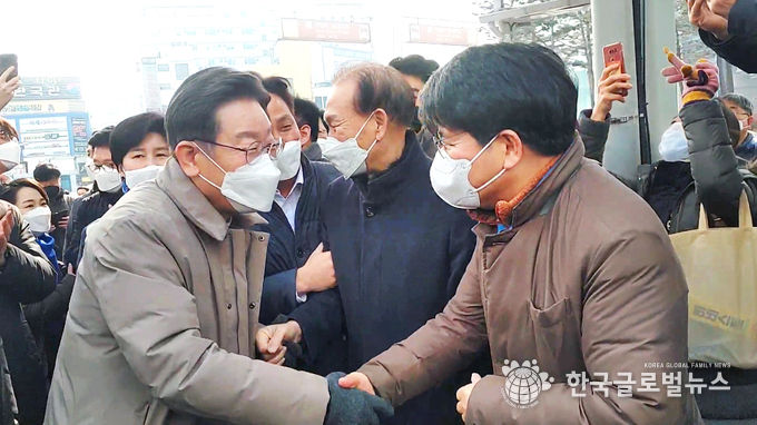 (한국글로벌뉴스 -박소연 기자) 김상회 전 청와대 행정관(수원특례시발전연구소장)이 23일 더불어민주당 이재명 대통령 후보(전 경기도지사)를 수원시 팔달구 소재 수원역로데오거리 유세 현장에서 만나 반갑게 악수하며 응원했다.