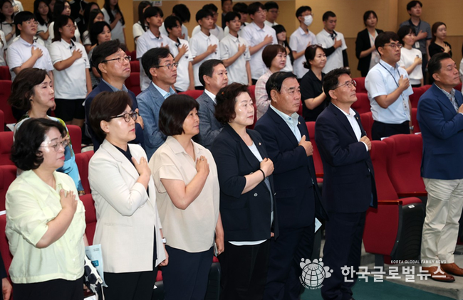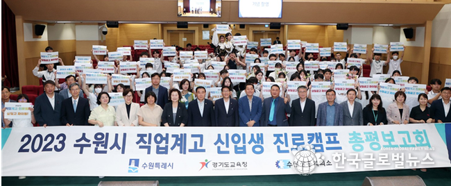 (한국글로벌뉴스 -박소연 기자) 수원특례시의회 김기정 의장, 이재식 부의장을 비롯한 유준숙 기획경제위원장, 장정희·윤명옥 의원이 7월 17일(월) 시청 대강당에서 열린 ‘2023 수원특례시 직업계고 진로캠프 총평 보고회’에 참석했다.