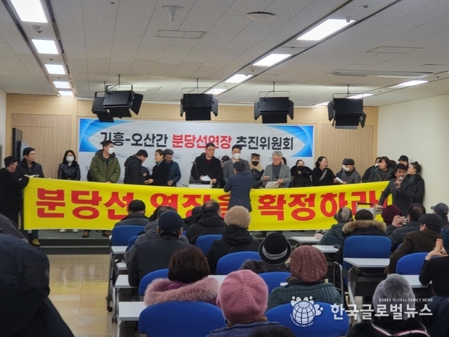 (한국글로벌뉴스 -박소연 기자) 4일 오전, 용인시청 에서 최근 국가철도공단은 사전타당성 조사 용역사업의 사업기간을 당초 2023년 11월 5일에서 2024년 6월 30일로 연장과 관련 ‘기흥-오산 분당선 연장 공동추진위원회’가 기자회견을 가졌다.
