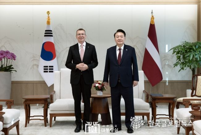 (한국글로벌뉴스 - 박소연 기자) 윤석열 대통령은 11월 28일 한국을 실무 방문 중인 '에드가르스 린케비치스(Edgars Rinkēvičs)' 라트비아 대통령과 정상회담을 갖고, 양국 간 협력 증진 방안과 지역 및 국제정세에 대해 폭넓게 의견을 교환했다.