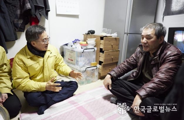 (한국글로벌뉴스 - 박소연 기자) 9일 경기도 전역에 한파특보가 발효된 가운데 김동연 경기도지사가 수원시 팔달구 행궁동 주거취약세대(쪽방촌)를 찾아 신속한 난방비 지원을 약속했다.