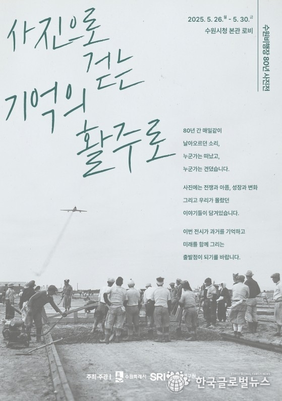 (한국글로벌뉴스 -박소연 기자) 수원시와 수원시정연구원이 공동으로 주관하는 ‘사진으로 걷는 기억의 활주로’ 사진전이 오는 5월 26일부터 30일까지 수원시청 본관 로비에서 열린다.