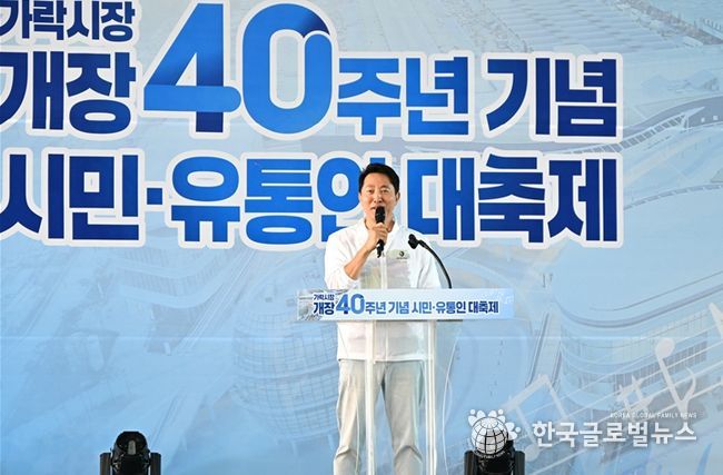 (한국글로벌뉴스 - 박종욱 기자) 오세훈 서울시장이 14일 오전 10시 가락시장 북문 인근 특설무대와 행사장에서 열린 '가락시장 개장 40주년 기념 시민‧유통인 대축제'에 참석해 상인들과 시민을 만나 축하 메시지를 전했다.
