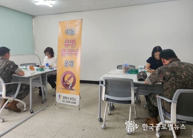 (한국글로벌뉴스 - 박소연 기자) 광명시 보건소는 7일 청년 장병들의 금연을 지원하기 위해 관내 52사단 군부대를 직접 방문하는 ‘찾아가는 이동금연클리닉’을 운영했다.
