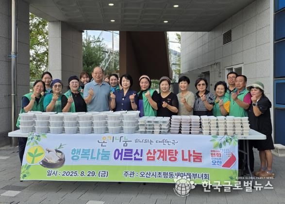(한국글로벌뉴스 - 박소연 기자) 오산시 초평동은 지난 8월 29일, 초평동새마을부녀회가 무더위로 지친 이웃들의 건강한 여름나기를 돕기 위해 삼계탕 50인분을 마련해 관내 독거노인과 취약계층에 전달했다고 밝혔다.