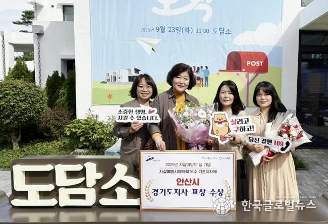 (한국글로벌뉴스 - 박소연 기자) 안산시는 경기도가 주관한 ‘2025년 자살예방의 날’ 기념행사에서 자살예방사업 우수 지자체로 선정돼 경기도지사 표창을 수상했다고 24일 밝혔다.