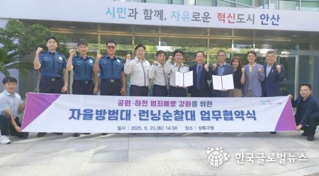 (한국글로벌뉴스 - 박소연 기자) 안산시 상록구는 지난 23일 안산시 자율방범대 상록연합대(연합대장 유병권)가 안산시청 마라톤 동호회(회장 박진길)와 공원·하천 범죄예방을 위한 ‘런닝순찰대 업무 협약’을 체결했다고 24일 밝혔다.