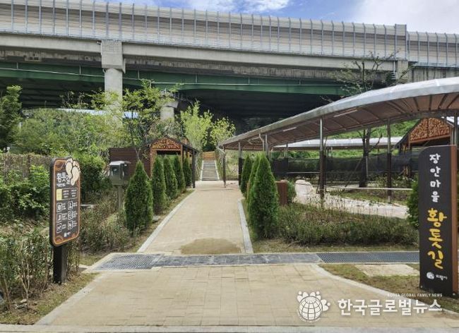 이번에 개장되는 ‘장안마을 황톳길’은 총연장 110m 순환형 산책로로 조성됐으며, 폭 2.5m의 시원한 개방감을 준 것이 특징이다.