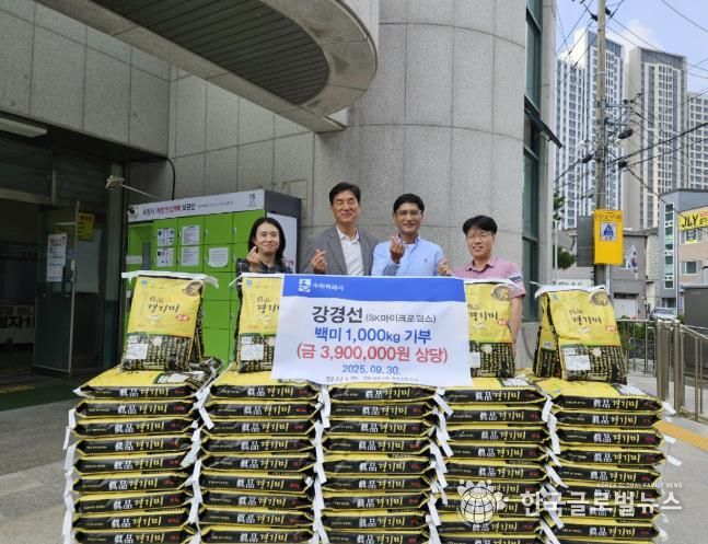 (한국글로벌뉴스 - 박소연 기자) 수원시 장안구 정자1동에 소재하는 SK마이크로웍스 소속 강경선 부장은 민족의 대명절인 추석을 맞아 지역 내 어려운 이웃들에게 따뜻한 나눔을 전하기 위해 지난 30일 정자1동행정복지센터에 쌀 1,000kg을 기부했다.