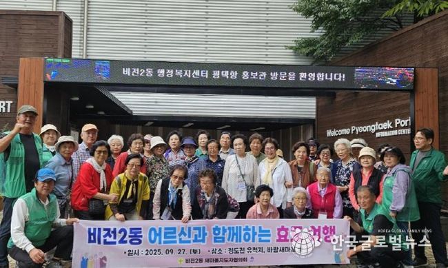 (한국글로벌뉴스 - 박소연 기자) 비전2동 새마을지도자협의회은 지난 9월 27일 관내 어르신 30명을 모시고 효도 관광을 다녀왔다.