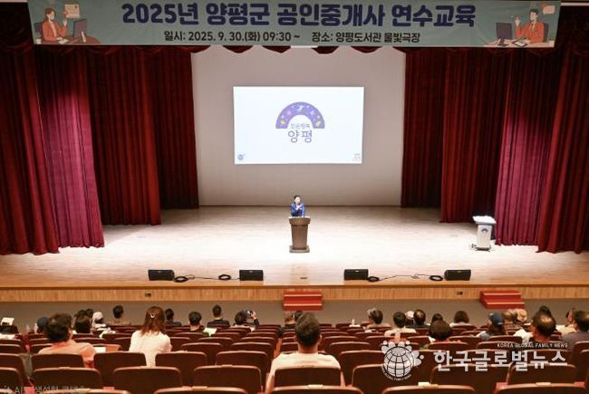 (한국글로벌뉴스 - 박소연 기자) 양평군은 지난 9월 30일 양평도서관 물빛극장에서 ‘2025년 공인중개사 연수교육’을 실시했다.