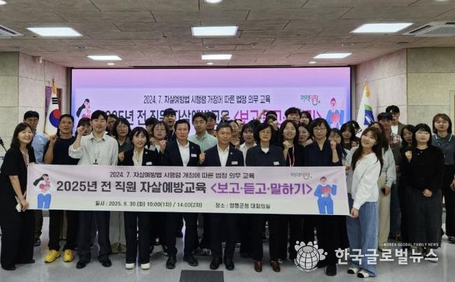 (한국글로벌뉴스 - 박소연 기자) 양평군은 지난 9월 30일 양평군청 대회의실에서 공공기관 종사자 약 100명을 대상으로 ‘자살 예방 생명지킴이 교육’을 실시했다.