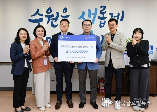 (한국글로벌뉴스 - 박소연 기자) 아경장학재단이 “취약계층 중·고등학생에게 전달해 달라”며 수원특례시에 300만 원을 기탁했다.